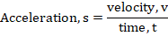 - Acceleration: This is the rate of change of velocity increase with time.